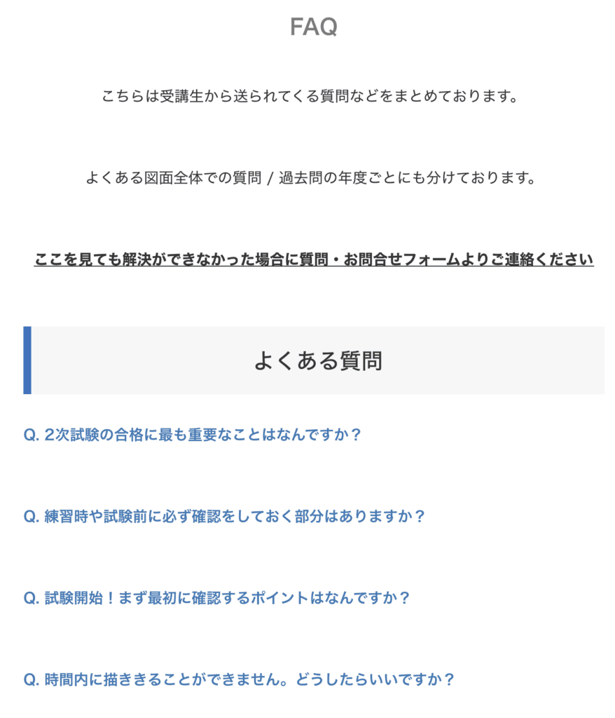 今回掲載したものはほんの一例ですので、ページ内には「過去問の回ごとによくある質問」の解答などもしております。