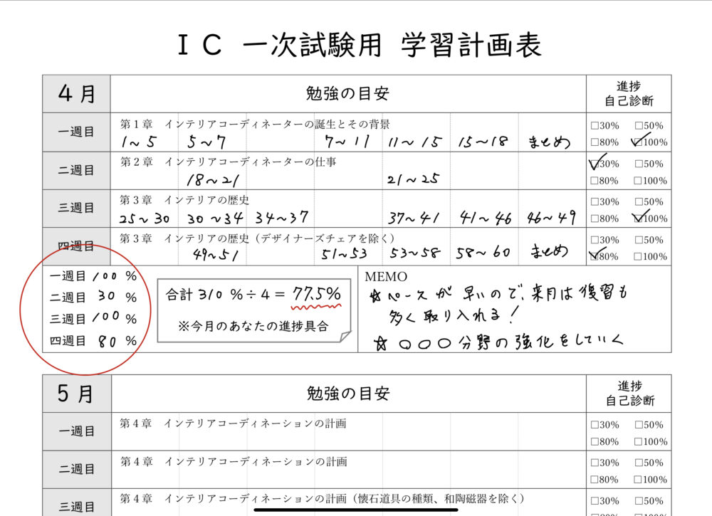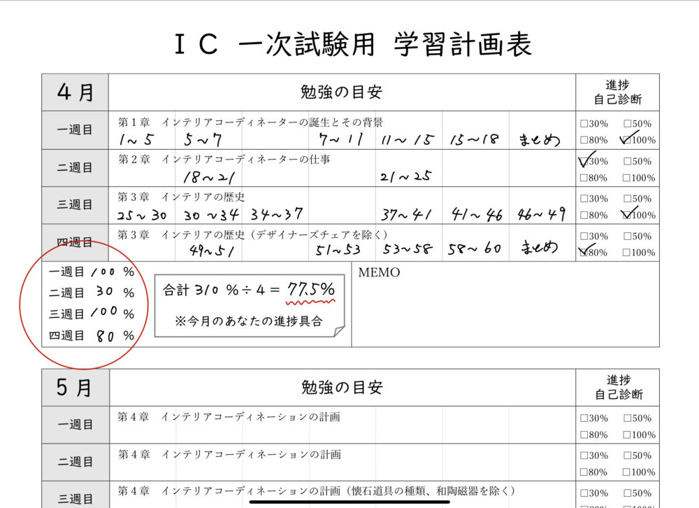 そして、1週間勉強をがんばったら、次は%のチェックです!