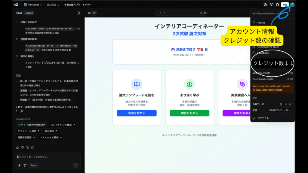2. 以後は画面左サイドバーでAIとチャットを行い指示だしします(修正など)